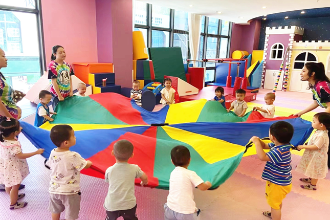 我們的中心由美國著名設(shè)計師精心設(shè)計,卡通式、情景化環(huán)境,可以在為不同月齡的寶寶帶來刺激的體驗的同時保證他們的安全。豐富多彩的軟包設(shè)計,使教具更加舒適和容易清潔。不論是只會爬的嬰兒、蹣跚學(xué)步的幼兒,還是學(xué)齡前兒童都可以在此玩耍。
